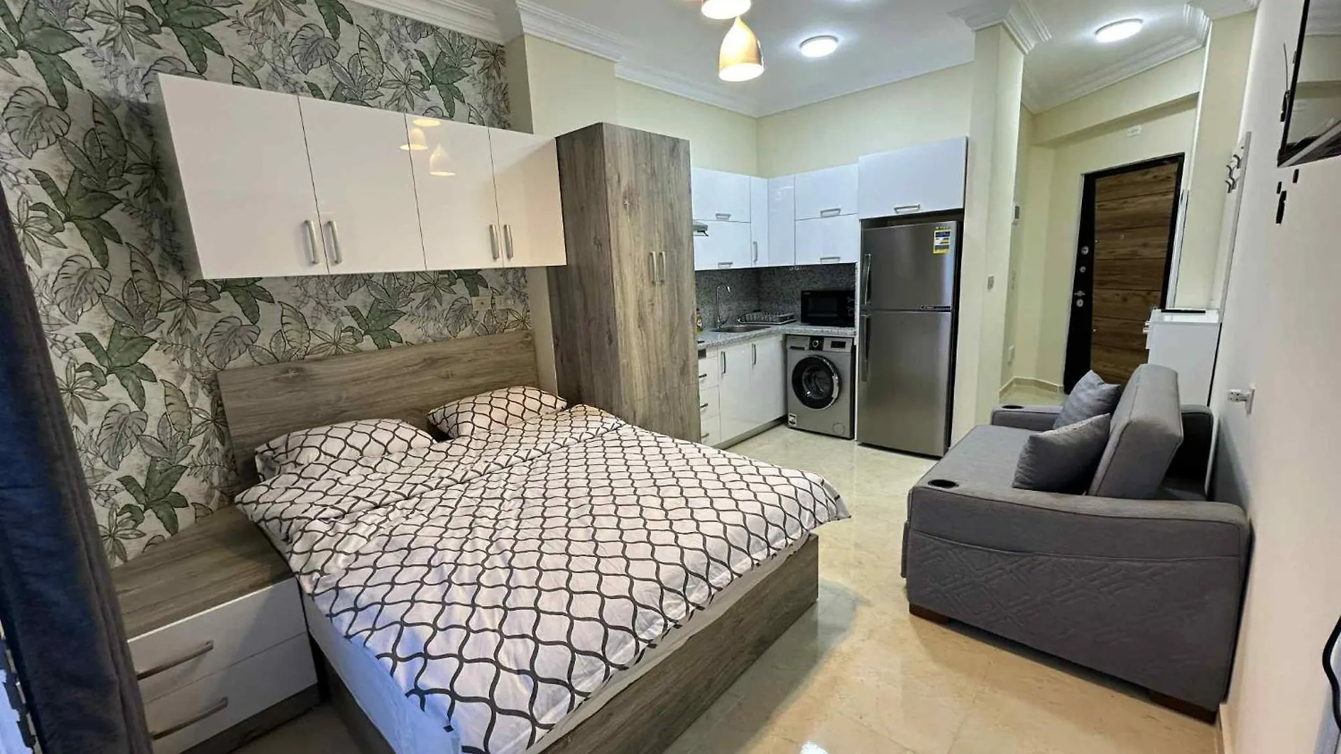 The apartment boasts a beachfront setting and entices guests to the Al Ahyaa district. The accommodation is located near a private beach.
